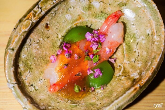 เริ่มต้นการเดินทางแห่งรสชาติด้วย ‘Wild caught Himi Kan-Buri Crudo’ ที่รังสรรค์อย่างประณีต ด้วยความสดใหม่ของ ปลาฮิมิบุริ (ปลาหางเหลือง) เข้ากันอย่างลงตัวกับรสเปรี้ยวละมุนของ คาโบสุ ดาชิ และความเค็มอ่อนๆจากหอยนางรมสด เป็นการเปิดประสบการณ์อันสมบูรณ์แบบ ต่อด้วย ‘Homemade Yakisoba Noodles’ ยากิโซบะที่ถูกยกระดับด้วยการเพิ่ม อูนิสายพันธุ์ มุราซากิ ใบโอบะ มาพร้อมกับความกรุบกรอบของ เมียวงะ (Myoga) หรือขิงญี่ปุ่น ตามมาด้วยความหอมและนุ่มละมุนของ ‘Jean Larnaudie Foie Gras’ ที่สื่อถึงความอุดมสมบูรณ์ของฤดูใบไม้ร่วงได้อย่างสมบูรณ์แบบ เสิร์ฟพร้อมอาร์ติโชค ซุปดาชิ เพิ่มรสกลมกล่อมด้วย ชีสมิโมแลต ที่บ่มนานถึง 24 เดือน และอินทผลัม ปิดท้ายด้วย ‘Edamame Miso Cured Norwegian Cod’ ที่นำปลาค็อดจากนอร์เวย์ มาบ่มกับมิโซะและถั่วแระญี่ปุ่นจนได้รสชาติแห่งท้องทะเลอันเป็นเอกลักษณ์ ยกระดับความหรูหราด้วย คาเวียร์ Oscietra และปลาไหลรมควันในซุปที่ผ่านการบ่มมาอย่างดี