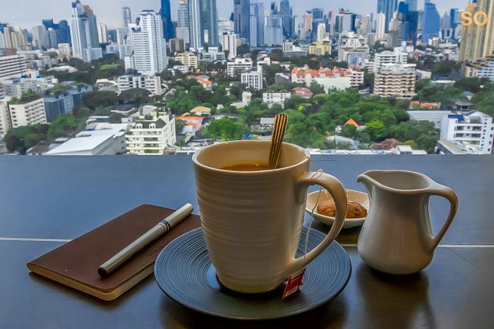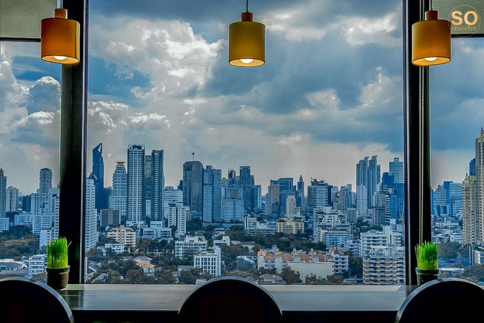 นอกจากโต๊ะธรรมดาแล้วนั้น ตามแนวหน้าต่างก็ยังมีบาร์ที่หันหน้าเข้าหากระจกที่สามารถมอเห็นวิวของกรุงเทพมหานครฯได้โดยตรง จึงทำให้สามารถรับประทานอาหารไปพร้อมกับการนั่งชมวิว