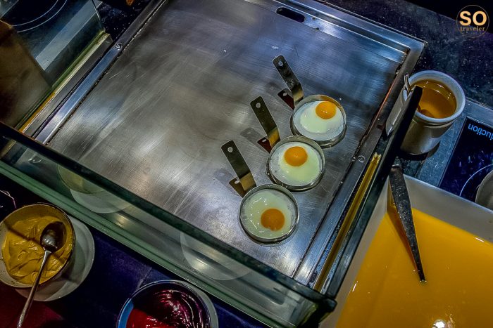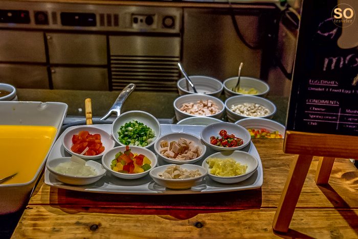 ส่วนของ Executive Lounge แบ่งออกเป็น 3 ช่วงเวลาหลักๆ คือช่วง Complimentary Executive Breakfast ที่เริ่มต้นตั้งแต่ 6 โมงเช้า จนถึง 10 โมงครึ่ง (วันเสาร์ อาทิตย์ และวันหยุดนักขัตฤกษ์ จะเปิดให้บริการถึง 11โมงเช้า) บริการอาหารบุฟเฟต์และ a la carte หลากหลายเมนู แต่อย่าพลาดเมนูซิกเนเจอร์อย่าง Avani Signature Egg และ Egg Benedict