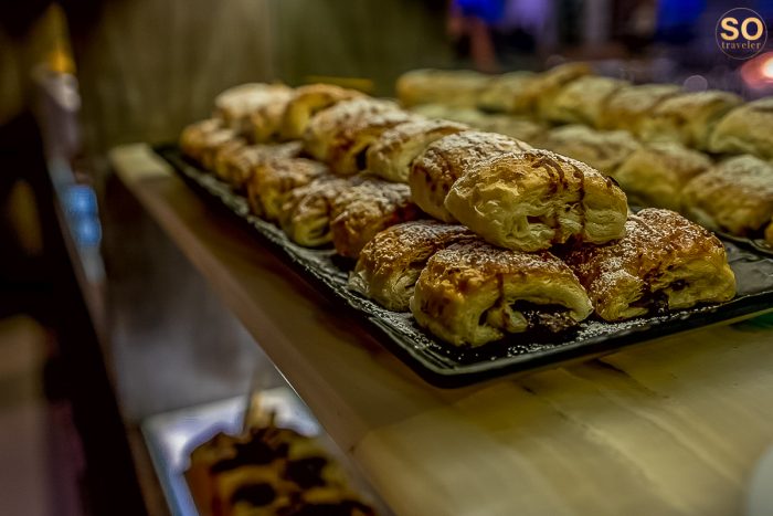 Complimentary Evening beverages and canapes เริ่มตั้งแต่ 6 โมงเย็นจนถึง 2 ทุ่ม มีบริการอาหารบุฟเฟ่ต์และ Canape หลากหลายชนิดให้เลือกรับประทาน เช่น Pasta olio, Tori Mushroom, Sushi salmon และ ลาบหมู รวมถึงของหวานหลากหลายชนิด เช่น เค้กมัชชะ และ มากาลอง ทั้งหมดนี้ ยังมีเครื่องดื่มแอลกอฮอลล์ให้เลือกลิ้มลองกันอีกด้วย