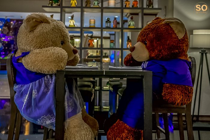 นอกเหนือจากอาหารหลากหลายชนิด เราจะสังเกตเห็นตุ๊กตาหมีขนาดใหญ่ 2 ตัว กำลังนั่งรับประทานอาหารกันอยู่ด้วย ซึ่งตุ๊กตาหมีที่กำลังนั่งรับประทานอาหารอยู่นั้น ไม่ได้เป็นเพียงแค่การตกแต่งของทางร้านเท่านั้น แท้จริงแล้ว การนำตุ๊กตาหมีขนาดใหญ่ 2 ตัวมาตั้งเอาไว้เป็นการย้อนรอยถึงเรื่องราวที่เคยเกิดขึ้นกับทางโรงแรม ซึ่งเรื่องที่เคยเกิดขึ้นนั้น มีที่มาที่ไปจากการที่มีเด็กผู้หญิงคนหนึ่งลืมตุ๊กตาหมีทิ้งเอาไว้ขณะที่เคยมาพักที่โรงแรมแห่งนี้ แต่ทางโรงแรมนั้น ได้ทำการติดต่อทำเรื่องเพื่อส่งตุ๊กตาหมีตัวนั้นกลับสู่อ้อมอกของเด็กน้อย จนทำให้เกิดเป็นเรื่องเล่าความใส่ใจในบริการของทางโรงแรม และการนำเอาตุ๊กตาหมีมาวางไว้นั้น ก็เพื่อเป็นอนุสรณ์ที่บอกเล่าเรื่องราวของเหตุการณ์ครั้งนั้นที่เคยเกิดขึ้น