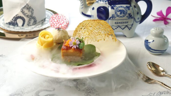 ภายใต้การกำกับดูแลของมาสเตอร์เชฟนูรอ โซ๊ะมณี สเต็ปเป้ และคุณคาร์ล สเต็ปเป้ ผู้ร่วมก่อตั้งกลุ่มบลู เอเลเฟ่นท์ เมนูพิเศษ “Golden Symphony” ได้รับแรงบันดาลใจจากความงดงามของวัฒนธรรมไทยในแต่ละภูมิภาค ถ่ายทอดผ่านเมนูรังสรรค์สุดประณีตที่คัดสรรวัตถุดิบท้องถิ่นระดับพรีเมียม โดยเฉพาะวัตถุดิบที่ได้รับการรับรองสิ่งบ่งชี้ทางภูมิศาสตร์ (GI) เพื่อยกระดับคุณค่าของผลิตผลไทย และสืบสานแนวทางตามพระราชดำริของโครงการหลวง