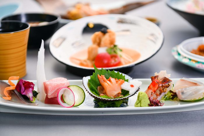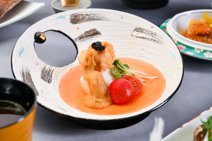 เชฟชิเงรุ ฮางิวาระ (Shigeru Hagiwara) หัวหน้าพ่อครัว (Master Chef) ประจำห้องอาหาร ยามาซาโตะ ได้รังสรรค์อาหารเป็นพิเศษจัดเป็นชุดอาหารค่ำ “ไคเซกิ” เพื่อรับประทานคู่กับสาเกบอร์น โดยเลือกใช้วัตถุดิบชั้นดีตามฤดูกาลของประเทศญี่ปุ่นมาปรุงเป็นอาหารญี่ปุ่นรสชาติต้นตำรับ เพื่อเพิ่มอรรถรสการดื่มสาเกบอร์น เริ่มจากอาหารเรียกน้ำย่อย ปลามังค์ฟิชนึ่งกับสาหร่ายทะเลและชิราโกะ (Shirako) ท่อเก็บน้ำอสุจิปลา ราดซอสมิโซะผสมตับปลามังค์ฟิช ที่ให้บริการคู่กับสปาร์คกลิ้งสาเกบอร์นพรีเมี่ยมจุนไม ไดกินโจ (BORN Premium Sparkling Junmai Daiginjo)