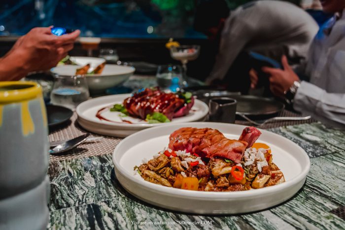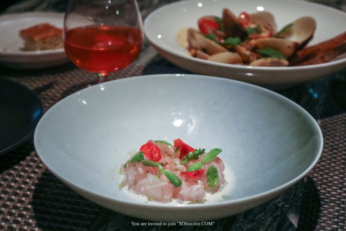 Spotted Grouper Crudo : กินิเลา (Kinilaw) จานนี้ทำมาจากปลาแมคเคอเรลสไลซ์ชิ้นหนาเต็มคำ ปรุงด้วยกะทิและสมุนไพรหลายชนิด ให้กลิ่นคล้ายต้มข่าของไทย แต่ได้รับอิทธิพลมาจากอาหารฟิลิปปินส์เป็นหลัก โดยรวมให้รสชาติที่กลมกล่อมและแปลกใหม่สำหรับใครที่ไม่เคยทานมาก่อน