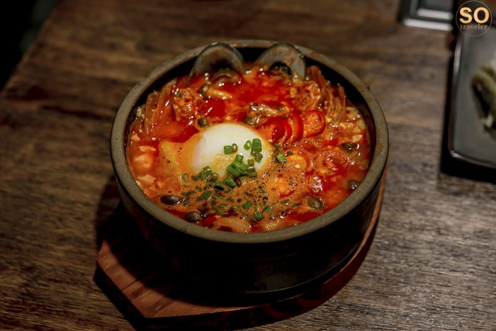 นอกจากบรรดาพระเอกของงานอย่างตัวเนื้อนั้น ทางร้านก็ยังมีเมนูอื่นที่น่าสนใจเช่นกัน เช่น ซุปทะเลกิมจิ ที่มีกลิ่นของมันปูเตะจมูกอย่างมาก รวมถึงกลิ่นของกิมจิที่หอมมากๆ ผสมกลมกลืนกับตัวของมันปูเช่นกัน ซึ่งตัวซุปนั้น มีความเผ็ดเพียงเล็กน้อย กำลังพอดีมากๆ อีกทั้งยังมีความกลมกล่อมและหวานมันจากตัวของมันปูเพิ่มเข้าไปอีก ซึ่งกุ้งและปูที่ถูกเสริฟมาพร้อมกับซุปนั้น ก็มีขนาดใหญ่เช่นกัน