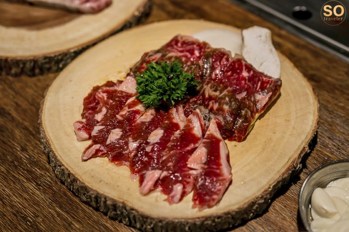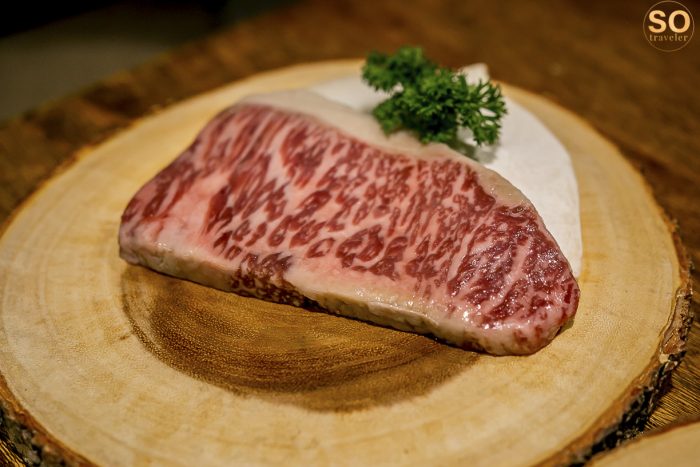 สำหรับเนื้อตัวแรกที่เราจะมาพูดถึงกันนั้น นั่นคือ Stripedlion Wagyu A4 ซึ่งตัวเนื้อนั้น จะมีความมัน รสสัมผัสที่นุ่ม และความช่ำที่อยู่ในตัวเนื้อ รวมถึงความหวานของตัวเนื้อที่จัดได้ว่ากำลังพอดีมากๆ ซึ่งเราขอแนะนำให้กินคู่กับน้ำจิ้มเต้าเจี้ยว ที่จะมีความเค็มของมันมาตัดกับความหวานของตัวเนื้อกันได้อย่างพอดี อีกทั้ง หากกินพร้อมกับเบียร์ Sapporo Draft ที่มีความขมเล็กน้อย ความหวานของมัน จะไปตัดกับขมของเบียร์ให้มีความนุ่มมากขึ้น อีกทั้งยังช่วยดึงรสชาติของเนื้อให้เด่นขึ้นไปพร้อมๆกันอีกด้วย
