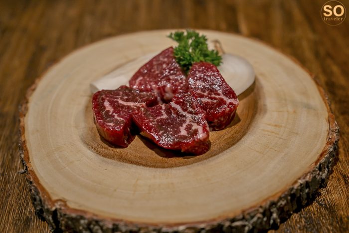 Tenderloin หนึ่งในส่วนของตัวเนื้อที่มีมันเยอะที่สุด ทำให้สีของตัวเนื้อก่อนที่จะนำไปลงกระทะนั้น สวยงามอย่างมาก อีกทั้งตัวเนื้อนั้น ยังมีความนุ่มละลายในปาก และไม่มีความเหนียวเลย ถึงแม้ว่าตัวเนื้อจะมีกลิ่นที่แรงกว่าตัวอื่น แต่หากรับประทานพร้อมกับผักที่นำมาห่อ และน้ำจิ้มเต้าเจี้ยว มันจะเกิดการผสานตัวกันอย่างกลมกล่อม และเข้ากันได้ดีมากๆ