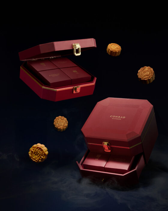 กล่องขนมไหว้พระจันทร์ของโรงแรมคอนราด กรุงเทพ ได้รับการออกแบบและรังสรรค์ขึ้นอย่างประณีต นับเป็นการยกระดับประสบการณ์ของการส่งมอบความสุขให้กับบุคคลที่คุณเคารพรัก