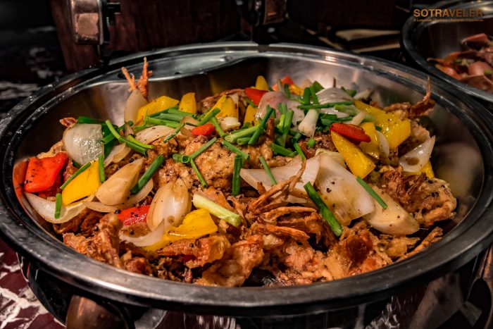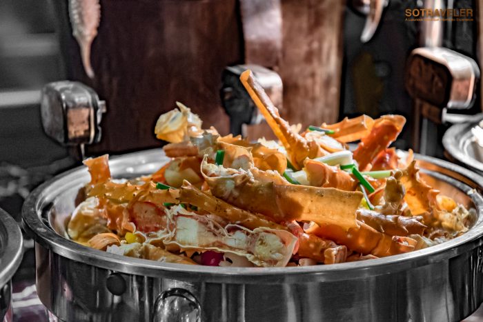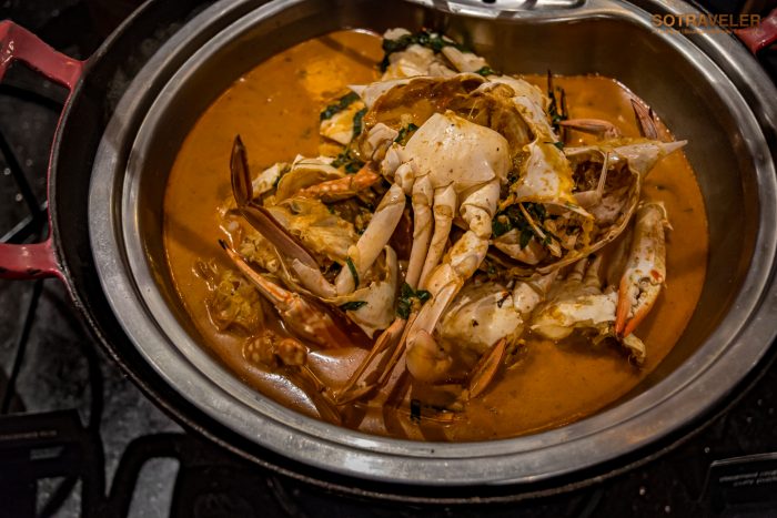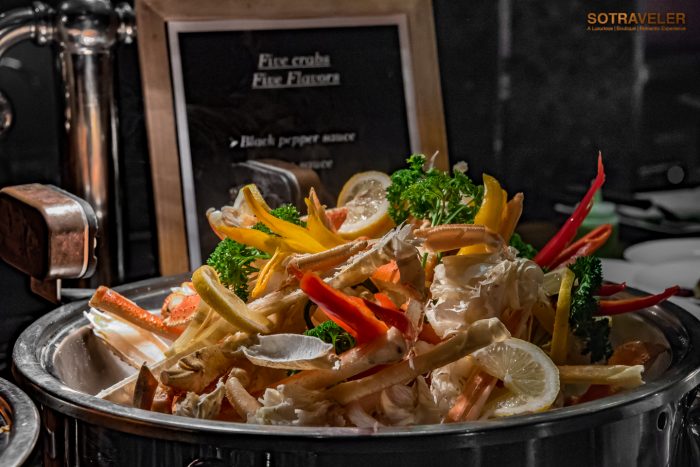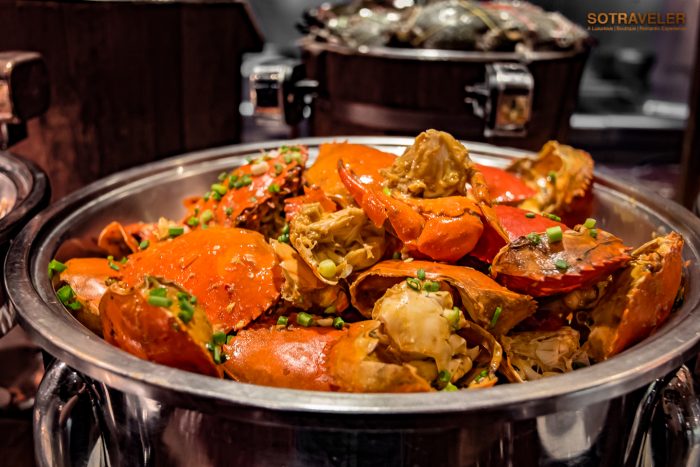 ทุกคนจะได้อิ่มอร่อยกับเมนูปู 5 ชนิด ปรุงออกมาใน 5 สไตล์ “ปูนิ่มผัดพริกไทยดำ” , “ปูอลาสก้าผัดซอสซาบายอนกับเหล้าแม่โขง” สูตรเฉพาะที่เชฟแจ็ค, “ปูหิมะผัดซอสเอ็กซ์โอ”, “ปูทะเลผัดซอสสิงคโปร์”, “แกงปูม้าใบชะพลู” จากที่เราได้ลองชิมทุกเมนู รสชาติโดยรวมจะอยู่ในระดับกลาง ๆ ไม่จัดจ้านจนเกินไปและไม่อ่อนเครื่องแกง เครื่องผัดจนจืดชืด ทานแบบเปล่า ๆ ได้ไม่เลี่ยนถึงขั้นต้องทานคู่กับข้าวสวยทุกคำ ถือว่าอยู่ในระดับที่พอดีกับการเสิร์ฟในไลน์บุฟเฟ่ต์