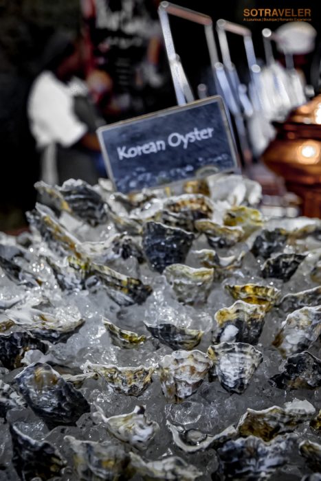 ในส่วนของหอยนางรมมีให้เลือกสองสายพันธ์ได้แก่ “หอยนางรมฟิน เดอ แคลร์” (Fine de Claire) และ หอยนางรมเกาหลี (Korean Oyster) ขนาดโต เนื้อแน่น มีความฉ่ำ หวาน