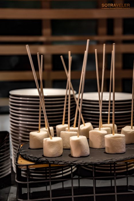 ใกล้ๆกันยังมี สเตชั่นบาร์บิคิว (BBQ) ที่ทางห้องอาหารเตรียมวัตถุดิบให้เลือกทานกันสี่อย่างได้แก่ กั้ง กุ้งแม่น้ำ ปลาหมึก และ หมูปิ้ง โดยมีเชฟอยู่ประจำที่สเตชั่นทะยอยปิ้งย่างแต่ละเมนูวางให้ทานกันใหม่ ๆ ร้อน ๆ จากเตา