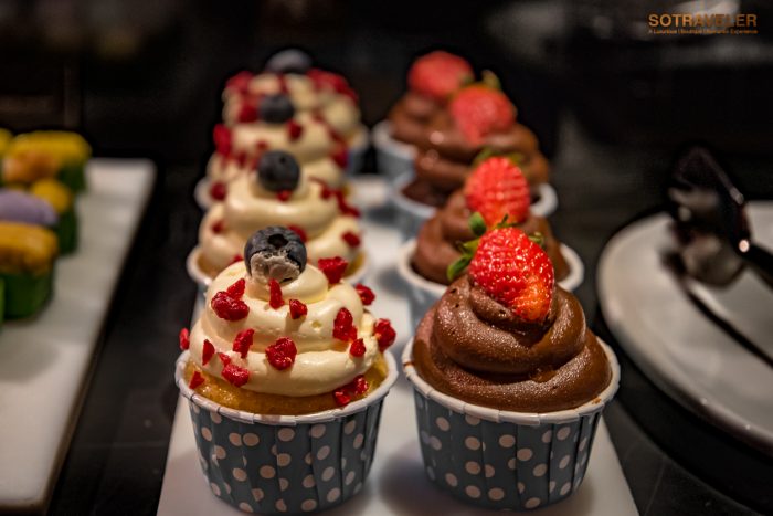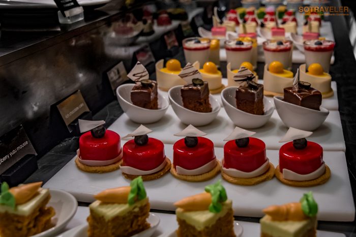 เค้กในไลน์บุฟเฟ่ต์ของห้องอาหาร เฟลเวอร์ส คัดสรรมาได้ดี อร่อยทุกชิ้นและมีความหลากหลายแนะนำเลยคือ “แมคคาเดเมียคาราเมลชีสเค้ก” ที่หอมมันเพลินกับการเคี้ยวกรุบ ๆ แมคคาเดเมียชิ้นโต “เค้กช๊อกโกแลต” ก็รสชาติเข้มข้นเราชอบทานคู่กับไอศกรีมวนิลา และ “เค้กแบล็คฟอเรสต์” เนื้อเค็กช็อคโกแลตหวานเนื้อนุ่มสลับชั้นกับครีมหอมอร่อย ท๊อปด้วยเชอร์รีรสชาติหวานหอม ถ้าเลือกทานกันไม่ถูกก็ทานทุกอย่างเลยแล้วกัน