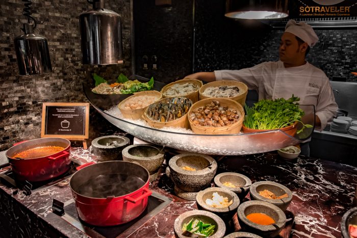 เปิดสเตชั่นให้เลือกผักและซีฟู้ดตามชอบใจ จากนั้นเติมน้ำซุปและเครื่องเคียง ฮอตสุดก็ต้องน้ำซุปหม่าล่า ที่หลายคนชอบและอยากลองกับความเผ็ดชา