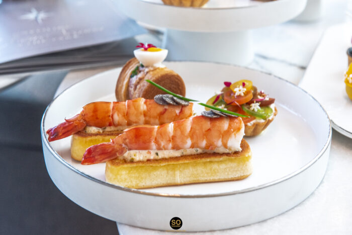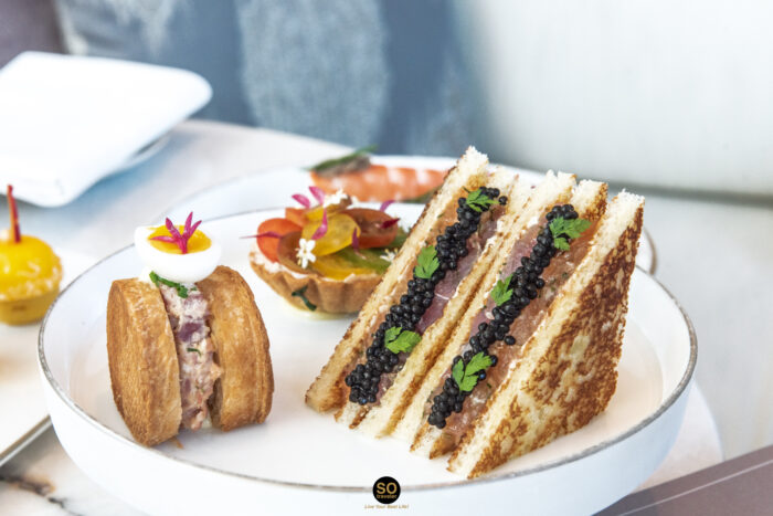 Elevate your experience with the Petit Sandwiches, a symphony of flavors that complement the sweet indulgences. The King Prawn & Lobster Remoulade, nestled in Brioche with Shaved Truffle, is a divine creation. The Cold Smoked Tuna, King Salmon & Caviar sandwich invites you to savor the ocean’s bounty, while the Dutch Milk Fed Veal on a Heirloom Tomato Tart and the Smoked Ham Hock & Quail Eggs sandwich bring an enticing array of savory delights.