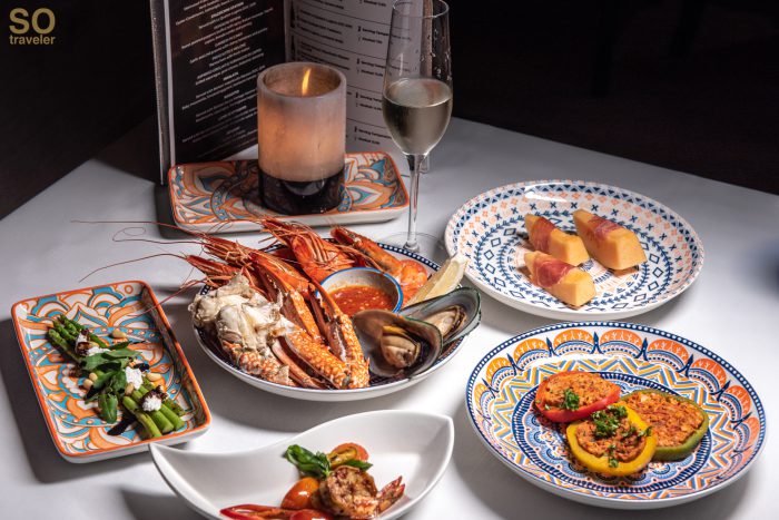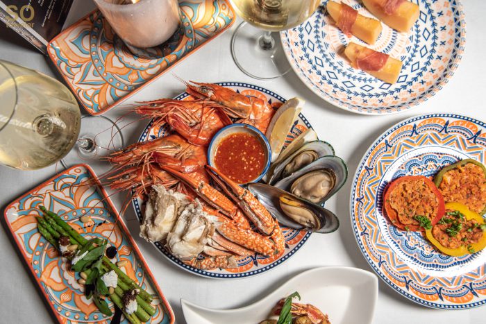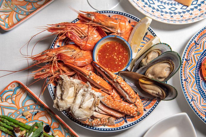 Marinated Prawns, Lemon Poached Squid, Clams, Mussels ,Herb Seabass, Sword fish