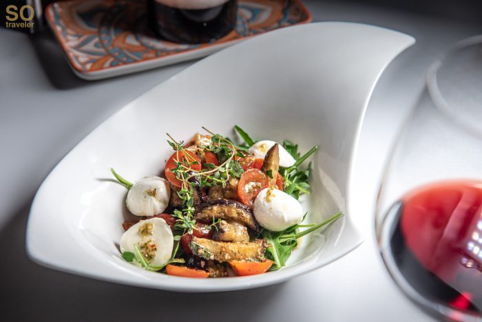 Baby mozzarella, Smoked eggplant, heirloom tomato, thyme, ruccola - Bertani Secco Vintage Verona IGT 2016 – RISSOTTO