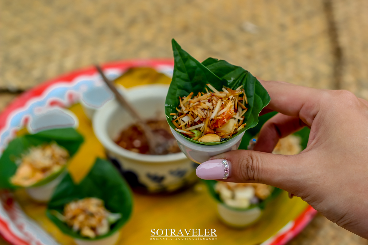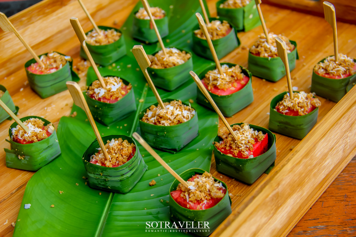 ทั้งหมดมัน น่ารัก เซอร์เรียลจนไม่อยากจะเชื่อสายตา ถึงตรงนี้พวกเราทั้งไทย ฝรั่ง เอนหลังนั่งนอน ห่อเมี่ยงคำ ชิมผัดไทยที่ทีมงานยืนผัดเตาถ่านร้อนๆตรงนั้นเลย เสริฟมาในกลีบหัวปลี เก๋ไปอีก เรารู้สึก ‘Wow’ ในความตั้งใจของทีมงานเรอเนสซองต์ ที่ใส่ใจทุกรายละเอียดจริงๆ
