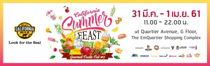 พบกับงาน “Gourmet Foodie Fest #2 by Gourmet & Cuisine” ภายใต้คอนเซ็ปต์ “California Summer Feast” ระหว่างวันที่ 31 มีนาคม-1 เมษายน 2561 เวลา 11.00-22.00 น.ณ The EM District EmQuartier โซน Quartier Avenue ชั้น G