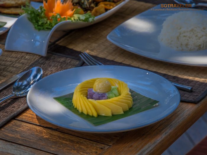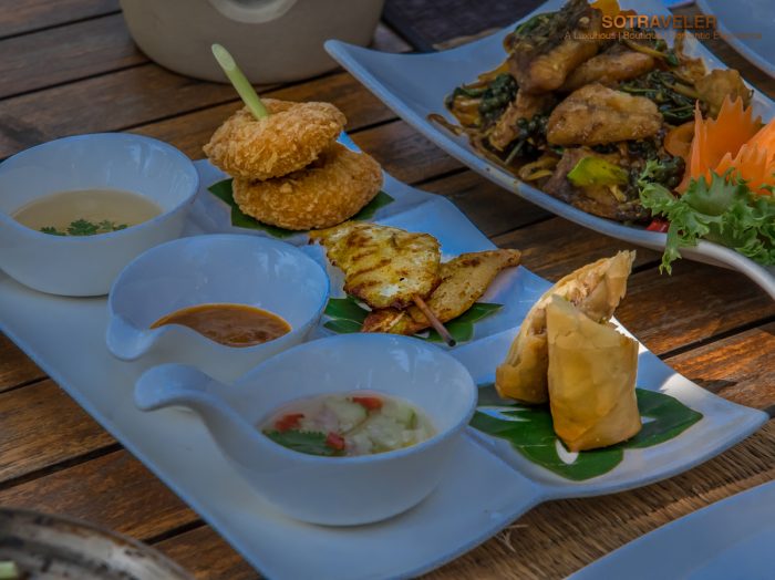 เซ็ทเมนูอาหารไทยที่ทางห้องอาหารได้แนะนำให้เราได้ชิมในวันนี้เป็นชุดเมนูอาหารไทยที่ประกอบไปด้วย หมูสเต๊ะ / ทอดมันกุ้ง / ปอเปี๊ยะทอด, ต้มยำกุ้งลายเสือ, ปลากระพงผัดฉ่า, ปูอบวุ้นเส้น, ผัดเห็ดรวม, ข้าวเหนียวมะม่วง