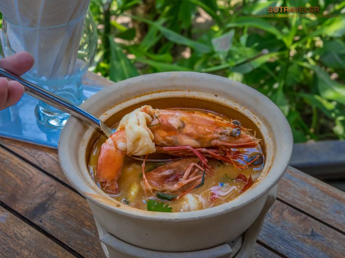 ต้มยำกุ้งลายเสือ ต้มยำกุ้งน้ำข้นรสชาติเปรี้ยว หวาน เค็ม กุ้งตัวใหญ่ผ่าหลังทานง่าน ซดน้ำซุปคล่องคอ
