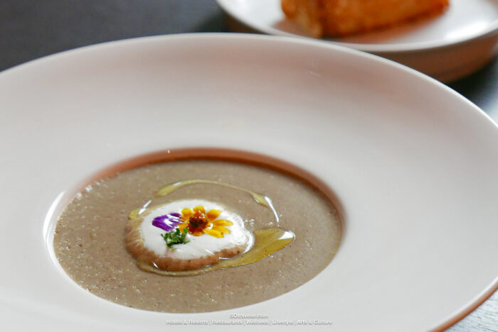 Wild Mushroom Soup เห็ดป่าในซุปครีม เสิร์ฟพร้อมบริโชทรัฟเฟิล