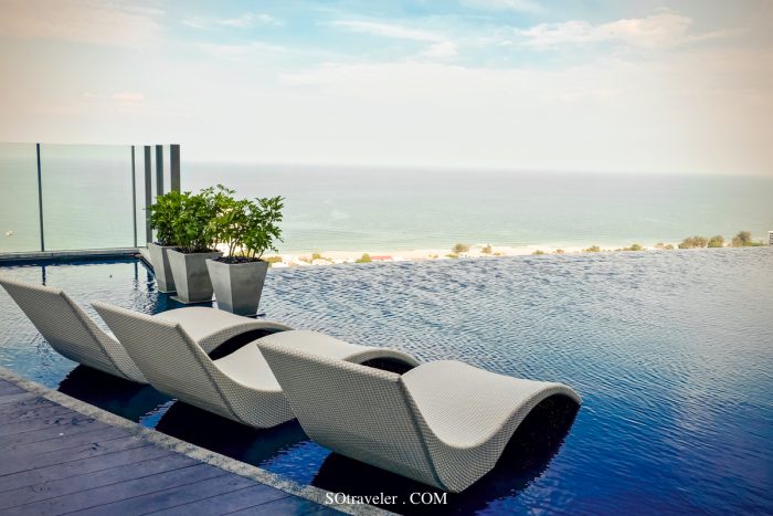 Hilight หนึ่งที่สำคัญมาก และเป็นความประทับใจของ SOtraveler กับที่ Holiday Inn VanaNava คือ สระว่ายน้ำแบบอินฟินิตี้ (Infinity Pool) ที่สามารถมองเห็นวิวของเมืองหัวหินไปจนถึงเขาเต่า และ “วานา นาวา สกาย” รูฟท็อปบาร์บนชั้น 27 ที่สูงที่สุดของโรงแรม มาพร้อมกับจุดชมวิวลอยฟ้า หรือ สกายเด็ค (Sky Deck) ที่พื้นเป็นกระจกใส สูงจากระดับพื้นดินถึง 110 เมตร มองเห็นวิวอ่าวหัวหิน เขาตะเกียบ และเขาเต่า โดยที่บาร์แห่งนี้ได้ “แอชลี ซัตตัน” ผู้อยู่เบื้องหลังความสำเร็จของ เดสติเนชั่นบาร์ระดับโลกหลายแห่งอย่าง แมกกี้ ชูส์ (Maggie Choo’s) , ไอรอน แฟรี่ส์ (Iron Fairies) ในกรุงเทพฯ และ โอฟีเลีย (Ophelia) ในฮ่องกงมาร่วมสร้างสรรค์ให้เป็นร้านอาหารที่นักท่องเที่ยวที่มาหัวหินต้องมาเยือน