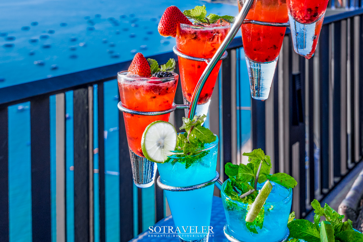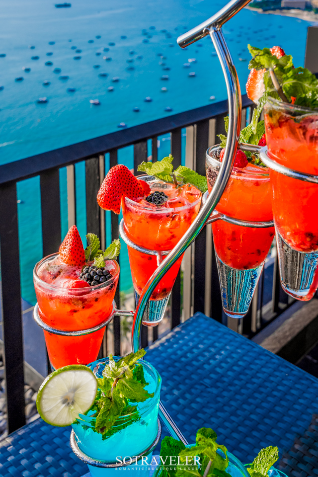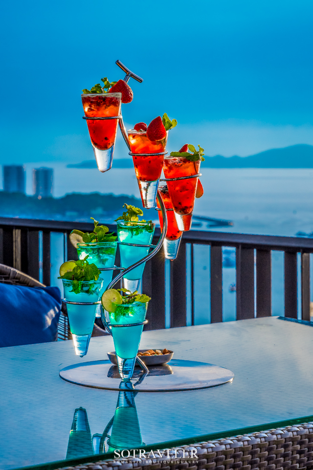 ครั้งนี้เราขอนั่งเพลินๆกัน บริเวณด้านนอกตั้งแต่ช่วงพระอาทิตย์ลับขอบทะเลไปจนถึงช่วงดินเนอร์ยาวไปเลย บรรยากาศสุดชิลและทำเราติดใจสุดๆไปเลย ไฮไลท์ช่วงซันเซ็ทต้องยกให้กับการได้ยกช็อทจาก ฮอไรซันค็อกเทลทาวเวอร์ (Horizon 8-shot tower) ขึ้นมาจิบ
