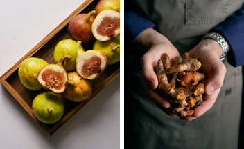 ซ้าย- ขวา: มะเดื่อ จากจังหวัดชลบุรี, ขมิ้น จากจังหวัดเชียงราย