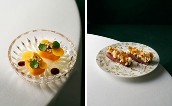 ไฮไลต์ของเมนูฤดูใบไม้ร่วงปี 2568 เริ่มต้นด้วยจานของว่างอย่าง ปลาแฮร์ริ่ง – ทาโก้ – มัสตาร์ด และ บีฟทาร์ทาร์ – มันฝรั่ง – มะเดื่อไทย ตามด้วยเมนูเรียกน้ำย่อย เช่น บัตเตอร์นัตสควอช – เมล็ดฟักทอง และ เป็ดรมควัน – เชอร์รี่ ก่อนเข้าสู่จานหลักที่โดดเด่นด้วยวัตถุดิบนำเข้า อย่าง เนื้อหมูดำอิเบริโก – พาร์สนิป – ชิมิชูรี และ ปลาเทอร์บอต – เห็ดแบล็กทรัมเป็ต – เบอร์บล็อง