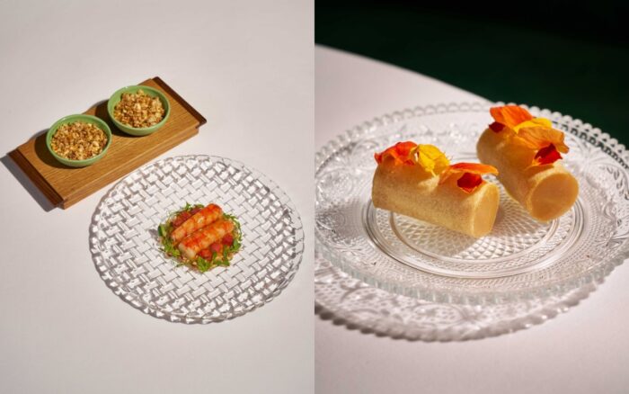 ตามด้วยอาหารเรียกน้ำย่อยที่ยังคงความสดชื่นในทุกคำ อาทิ Kampachi—Radish—Kaffir Lime ปลาคัมพาจินำเข้าจากญี่ปุ่น เสิร์ฟพร้อมซอสสมุนไพรไทยปรุงจากใบมะกรูด ตะไคร้ ข่า และเพิ่มความจัดจ้านด้วยพริก และ Carabinero—Barley—Herbs กุ้งคาราบิเนรอสสีสันสดใส เสิร์ฟคู่กับมูสจากน้ำสต็อกกุ้งแลงกูสทีน ข้าวบาร์เลย์คั่ว และเจลเกรปฟุต