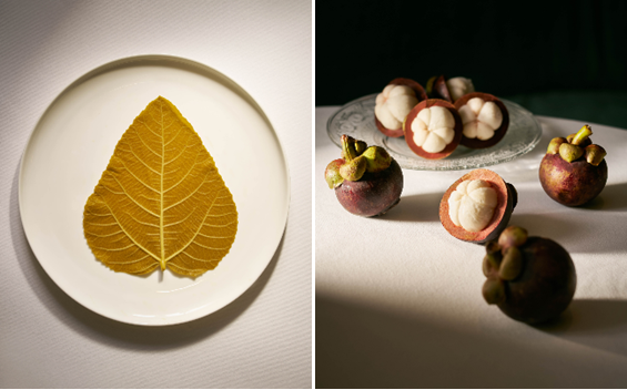 เชฟอาเน่ รีน หัวหน้าเชฟประจำห้องอาหารอิกนีฟ แบงคอก จุดประกายฤดูใหม่ด้วยแรงบันดาลใจจากภาพแสงแดดอันสดใสในยุโรป ที่ผักและผลไม้หน้าร้อนผลิบาน โดยเฉพาะผลไม้ตระกูล ‘ซิตรัส’ ที่รสชาติสดชื่นและกลิ่นหอมอันเป็นเอกลักษณ์เป็นเสมือนรสชาติประจำฤดูร้อนที่ทุกคนโหยหา เชฟอาเน่ได้นำเอารสชาติของความสดชื่นและเบาสบายนี้มาเป็นหัวใจหลักของเมนูประจำฤดูร้อน และสร้างสรรค์มิติแห่งรสชาติผ่านการผสมผสานวัตถุดิบชั้นเลิศจากทั่วโลกอย่างชาญฉลาด ไม่ว่าจะเป็น ใบชิโสะ เกรปฟรุต รวมถึงวัตถุดิบการเกษตรของไทย อาทิ มังคุดจากจันทบุรี, กล้วยน้ำว้าจากนนทบุรี, ใบตองหอม หรือชื่อท้องถิ่นในภาษากะเหรี่ยงเรียกว่า โกโป่ละ จากจังหวัดตาก, ข้าวฮางงอกจากบุรีรัมย์ และที่ขาดไม่ได้คือ ‘มะม่วง’ ผลไม้ประจำฤดูกาลที่เป็นดั่งนางเอกของเมนูฤดูร้อนนี้ ได้แก่ มะม่วงแก้วขมิ้นจากศรีสะเกษและอุบลราชธานี และมะม่วงน้ำดอกไม้หอมหวานจากนครนายก