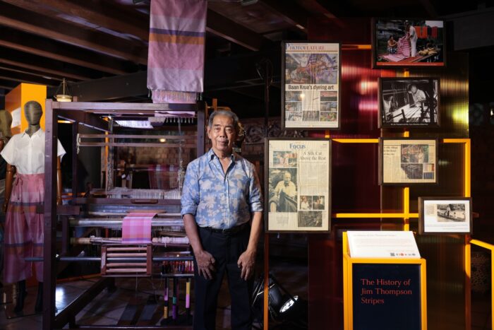 Mr. Niphon Manuthas, the 77-year-old owner of the last remaining Baan Krua weaving business, commented, “My mother started our silk business in 1927. Jim Thompson visited our community every morning to support our work, guiding us with patterns, colors, and weaving techniques. It is such a delight to see the new collection, which draws inspiration from our original collaboration, and preserves my family’s long tradition in textiles.”