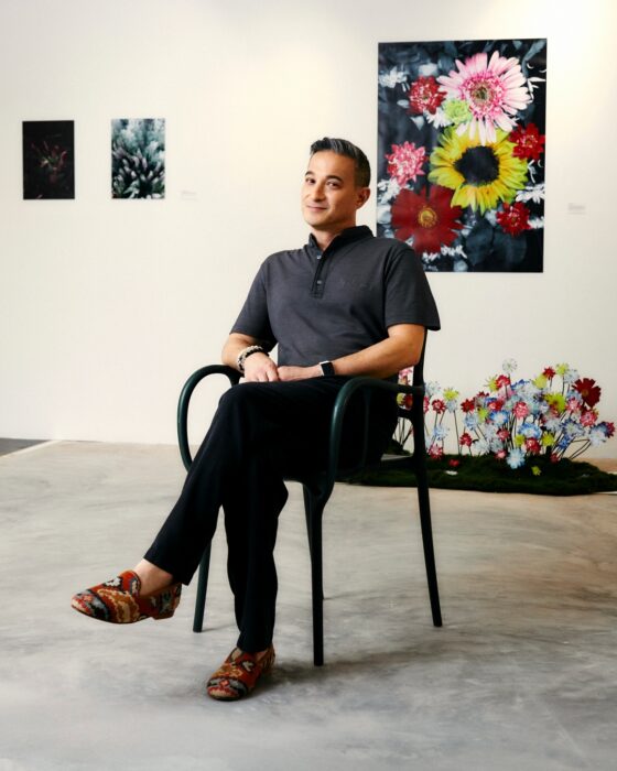 Thai-British entrepreneur and Managing Director of Woof Pack Projects, Jay Spencer stands out in his gallery space, effortlessly blending smart-casual style with a tucked-in grey Mandarin Polo. “I’m loving the cut of these polo shirts,” Jay remarked. “The shape is sharp and unique, while the side-slit hem lets you move through your day in comfort.”