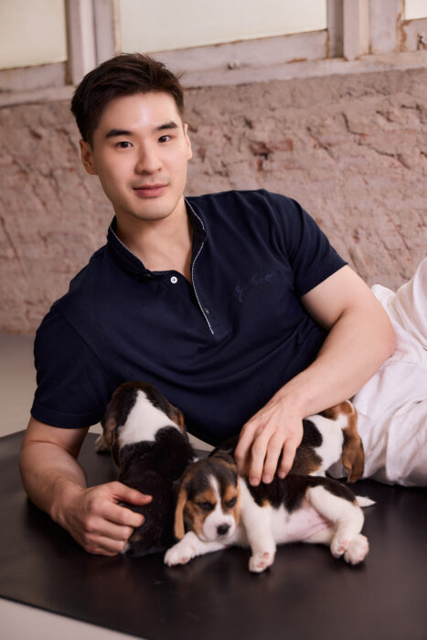 Filmed with his excitable colleagues at Puppy Yoga BKK, the first dog yoga class in Thailand, Most shows off his perfectly balanced outfit. “Wearing these shirts gives me confidence, whatever the occasion. From looking smart, managing the studio, to changing the look entirely with casual trousers for a meal out with friends,” advised Most.