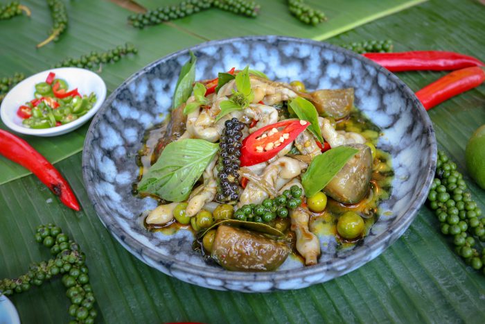นำทีมโดยเชฟสมคิด เกตุแก้ว เชิญชวนทุกท่านมาสัมผัสเอกลักษณ์อาหารพื้นเมืองปักษ์ใต้รสเผ็ดร้อนหนักเครื่องเทศเช่นพล่าปลาทูน่า ปลาน้ำดอกไม้แกงเหลือง หอยหลอดผัดฉ่า หรือจะเป็นเมนูเอาใจคนไม่ทานเผ็ดอย่างปลาทรายแดงทอดขมิ้น หรือแม้แต่แต่เตี้ยมภูเก็ตหลากชนิด และเผื่อท้องไว้สำหรับอาหารทะเลสดใหม่ตามฤดูกาล 12 ชนิดบนซีฟู้ดวอลล์ (Seafood Wall) อาทิ กุ้งแม่น้ำ กั้งกระดาน ปูม้า หอยแมงภู่ และปลาหมึกให้เลือกใส่หม้ออวยสีสดใส เพื่อนำไปให้เชฟปรุงสดไม่ว่าจะเป็น ผัดผงกระหรี่ ผัดพริกไทยดำ ผัดกระเทียม หรือเผาได้ตามใจแบบไม่อั้น
