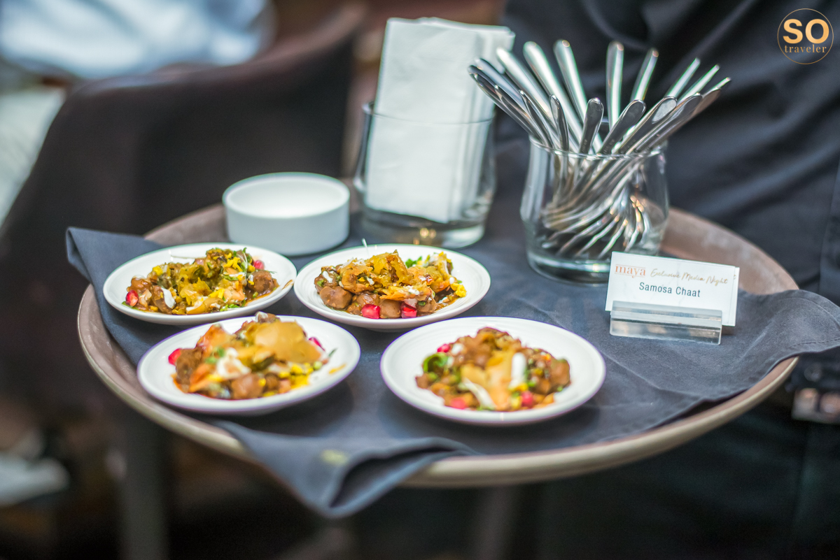 ตำแหน่งของห้องอาหารมายา เปิดให้ทุกคนได้สัมผัสกับบรรยากาศของมหานครกรุงเทพฯ ยามค่ำคืนได้อย่างเต็มอิ่มจากชั้น 29 ของโรงแรมฮอลิเดย์อินน์ สุขุมวิทกรุงเทพฯ พอนั่งโต๊ะเรียบร้อย อาหารเรียกน้ำย่อยเริ่มเสิร์ฟให้ชิม หลังจากที่เราได้เห็นหน้าตาของเมนูอาหารถือว่าเป็นการเริ่มต้นประสบการณ์การรับประทานอาหารอินเดียในกรุงเทพฯ ที่แปลกไปจากที่คุ้นเคย