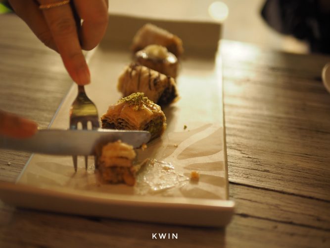 ขนมหวานซึ่งทำจากแผ่นแป้ง Filo ทางร้านดีไซน์เมนูหลากหลายรสชาติจากวัตถุดิบไทยและเทศที่มีเอกลักษณ์ในตัวเอง เช่น น้ำตาลแดง มะพร้าว หรือแอลมอนด์ เท่าที่ได้ชิม 5 ชิ้น 5 รสชาติในวันนี้ ทำให้รู้สึกได้ถึงความพิเศษของแต่ละชิ้น กินกับชาหรือกาแฟร้อนๆถือว่าคือความสุขของคนรักขนมหวานเลยแหละครับ