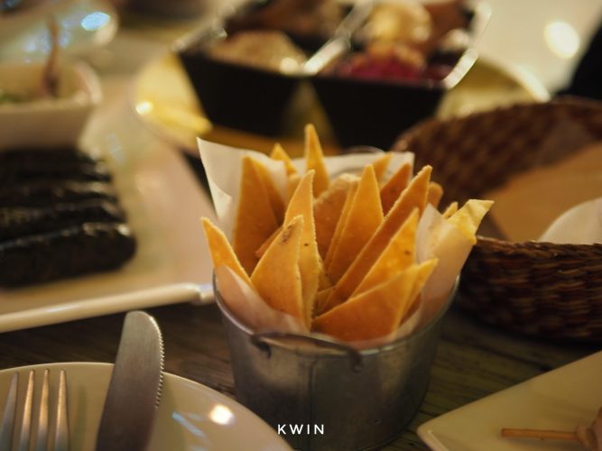 – Hummus – Chick Pea & Tahina Dip เนื้อดิปที่ผ่านการบดและกวนจากถั่วลูกไก่และกลิ่นเลม่อนให้ความรู้สึกนัวในปาก กลิ่นมะนาวเหลืองที่เตะจมูกทำให้จนรู้สึกหอมสดชื่นแล้ว ผสมกับสัมผัสบนลิ้นกับเนื้อดิปนวลๆ ถือเป็นเครื่องเคียงที่ดีกับแผ่นแป้ง หรือแท่งchipในมือ