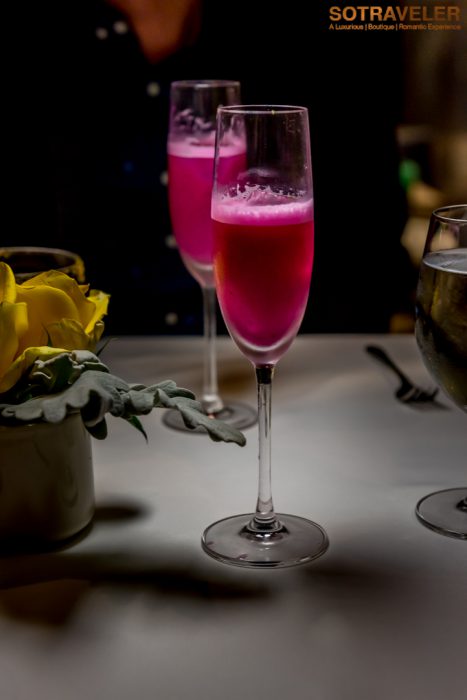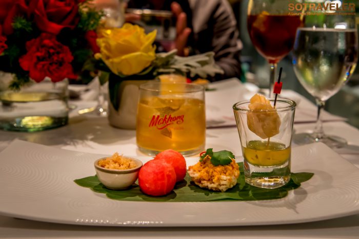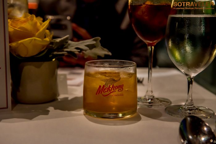 คอร์สเรียกน้ำย่อยนี้เสิร์ฟแพริ่งคู่กับค็อกเทล Mekhong Mantra ที่มีส่วนผสมของ Mekhong, จิงเจอร์เอล พร้อมบีบน้ำมะนาวสดที่ให้รสชาติเปรี้ยวและกลิ่นหอมแบบธรรมชาติ และสไลด์ขิงสดเป็นชิ้นเล็ก ๆ ใส่ลงไป รสชาติเปรี้ยวหวานและที่สำคัญคือมีความหอมกรุ่นละมุนในลำคอ เข้ากันได้ดีกับเมนูเรียกน้ำย่อยเซ็ทนี้มาก