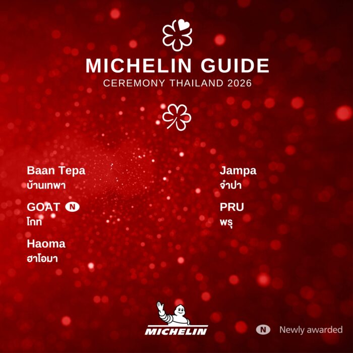 - ปีนี้เป็นปีแรกของไทยที่มีการมอบรางวัลพิเศษ MICHELIN Guide Mentor Chef Award ให้กับเชฟผู้มีบทบาทสำคัญต่อวงการอาหารผ่านการทุ่มเทมุ่งมั่นถ่ายทอดความรู้และทักษะที่สั่งสมมาให้กับเชฟรุ่นใหม่
