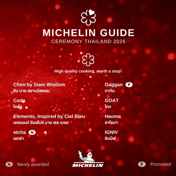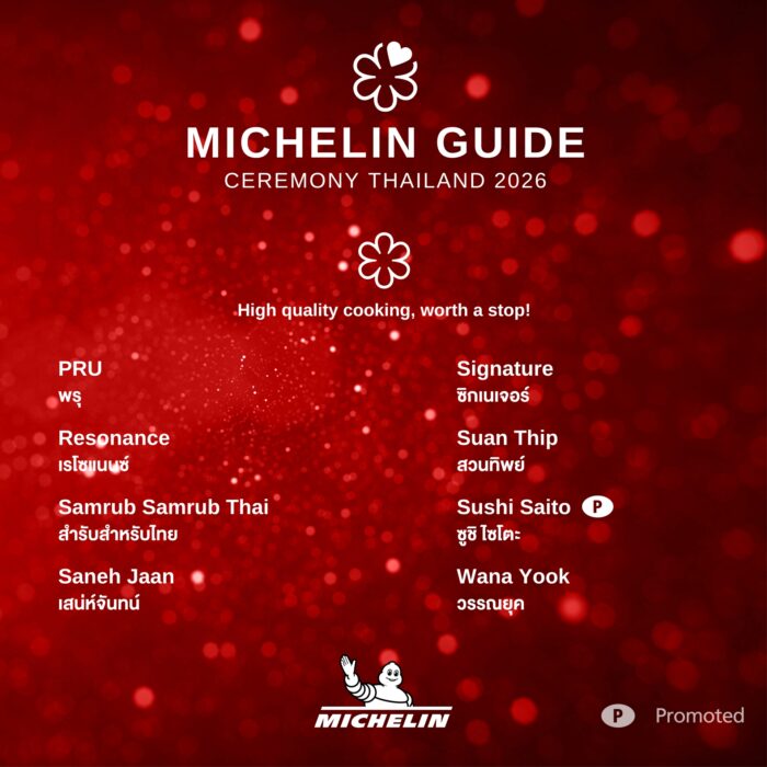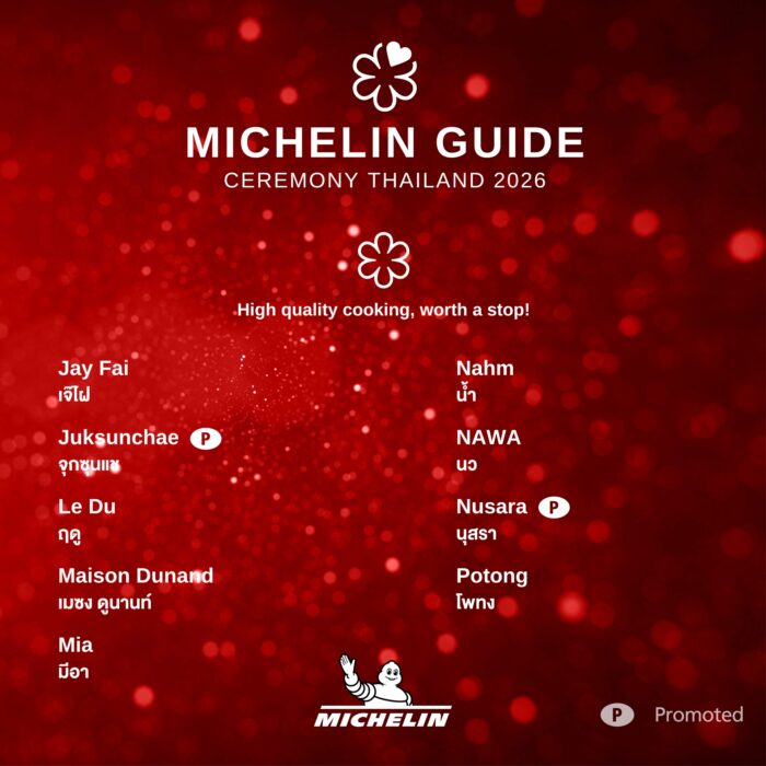 ในคู่มือ ‘มิชลิน ไกด์’ ฉบับประเทศไทย ประจำปี 2569 มีร้านอาหารคว้ารางวัล ‘สองดาวมิชลิน’ เพิ่มขึ้น 2 ร้าน โดยทั้งคู่ได้รับการเลื่อนระดับจาก ‘หนึ่งดาวมิชลิน’ ได้แก่