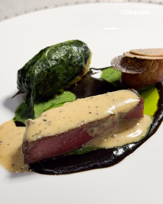 สำหรับคอร์สหลักสองจานได้แก่ Seabass โดยเชฟ Enrique ปลากะพงเนื้อขาวนุ่ม เสิร์ฟกับ Guava Mole ซอสกัววาที่ให้รสหวานอมเปรี้ยวกลมกล่อม ตัดกับ Choy Sum และ Beurre Blanc ที่ช่วยเชื่อมรสชาติได้อย่างมีระดับ