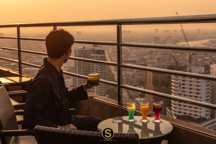 ใครที่ไม่ได้ใช้บริการ Executive Lounge และอยากมาสัมผัสเสน่ห์วิวพระอาทิตย์จากมุมสูงแบบนี้ สามารถแวะมาใช้บริการในส่วนของ THREESIXTY Rooftop Bar บาร์และห้องอาหารบนดาดฟ้า ณ ชั้น 31 เปิดให้บริการทุกวัน เวลา 17.00 – 01.00 น. มีเครื่องดื่มและเมนูอาหารว่างแบบทาปาสให้เลือกทาน พร้อมเพลิดเพลินไปกับเสียงเพลงที่ปลุกเร้าอารมณ์ของคุณให้เอนจอยกับบรรยากาศมากยิ่งขึ้น