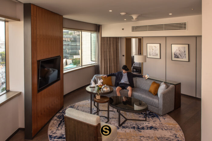 ห้องพักของที่นี่เริ่มต้นตั้งแต่ห้องระดับ Deluxe, Premium, Family, Executive และห้อง Suite มีให้เลือกทั้ง Family, Panoramic Executive และ Royal Suite การมาเยือน มิลเลนเนียม ฮิลตัน กรุงเทพฯ ของเราในครั้งนี้ เราเข้าพักที่ห้อง Panoramic Executive Suite หนึ่งในห้องพักแรร์ไอเทมที่ให้วิวแบบพาโนรามา ตำแหน่งของห้องพักจะอยู่ฝั่งแม่น้ำส่วนปลายสุดของตึกของแต่ละชั้น ดังนั้นจะมีชั้นละสองห้องเท่านั้น จึงเป็นห้องยอดนิยมที่หลายคนเลือกจองมาพัก เพื่อเติมเต็มประสบการณ์การพักผ่อนแบบพิเศษ