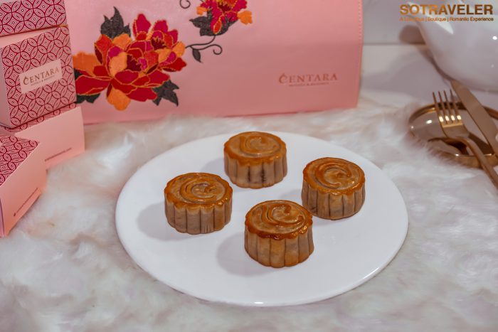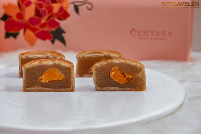 เพลิดเพลินกับขนมไหว้พระจันทร์จากเซ็นทาราทั้ง 6 รสชาติ เริ่มต้นด้วยความกลมกล่อมของ ขนมไหว้พระจันทร์ รสทุเรียนหมอนทอง ที่เน้นรสชาติและเนื้อสัมผัสหอมหวานของทุเรียนหมอนทองสุกหรือรสเม็ดบัวหอม และรสถั่วแดง ที่นำรสชาติหวานมันกลมกล่อมของวัตถุดิบคลาสสิกทั้งสองชนิดคือ เม็ดบัว และถั่วแดงมาให้คุณลองรับประทานในเนื้อสัมผัสที่ละเอียด เนียนนุ่ม เคล้ากับความมันเค็มของไข่แดง มอบมิติของรสชาติที่เข้ากันได้อย่างดีกับแป้งขนมไหว้พระจันทร์สูตรพิเศษของโรงแรมฯ และอีกความอร่อยประจำปี รสมัจฉะชาเขียวเข้มข้นกลมกล่อม และรสมะพร้าวหอมละมุนลิ้น ขนมไหว้พระจันทร์รสอร่อย 2 รสชาติพิเศษ ที่จะเติมเต็มประสบการณ์ฉลองเทศกาลไหว้พระจันทร์ในปีนี้อย่างเต็มที่