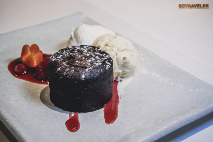 ตบท้ายด้วยของหวานเมนู The Chocolate Dream เป็นเค้กช็อกโกแลตลาวารสชาติเข้มข้น ตัดด้วยความละมุนของไอศครีมวนิลาและวิปครีม เป็นขนมหวานที่ช่างดีงามและลงตัว