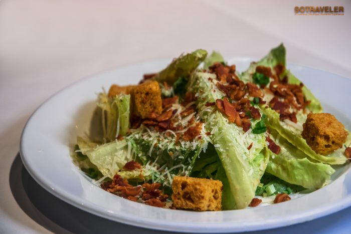 ซีซาร์สลัด (Caesar Salad) สลัดซิกเนเจอร์ของที่นี่ เลือกรสชาติน้ำสลัดได้ตามชอบ เลือกใส่หรือไม่ใส่แอนโชวี่ก็ได้แล้วแต่ความชอบของแต่ละคน เพราะเสิร์ฟแบบปรุงน้ำสลัดขึ้นใหม่จานต่อจาน และ คลุกสลัดให้ทานกันถึงโต๊ะ เป็นเมนูที่เราต้องสั่งเป็นทุกครั้งไปเมื่อมาทานที่นี่
