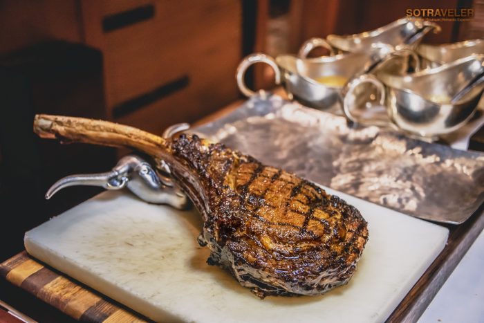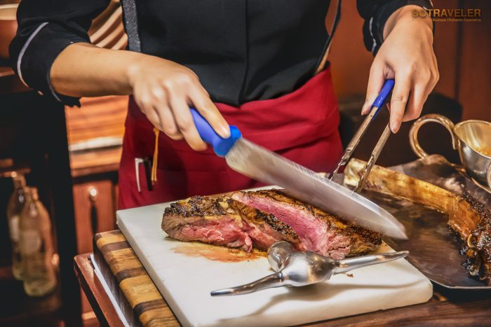 พนักงานเสิร์ฟหั่นเป็นชิ้นหนา แล้วจัดเรียงบนจานให้เลือกทานกันอย่างหนำใจ ถ้าให้สมบูรณ์แบบก็ต้องแกล้มด้วยไวน์แดงที่ทางร้านเลืิอกมาเป็นอย่างดีจากไวน์ลิสทั่วโลก