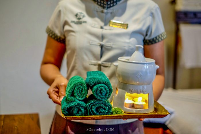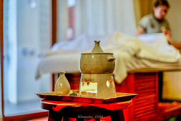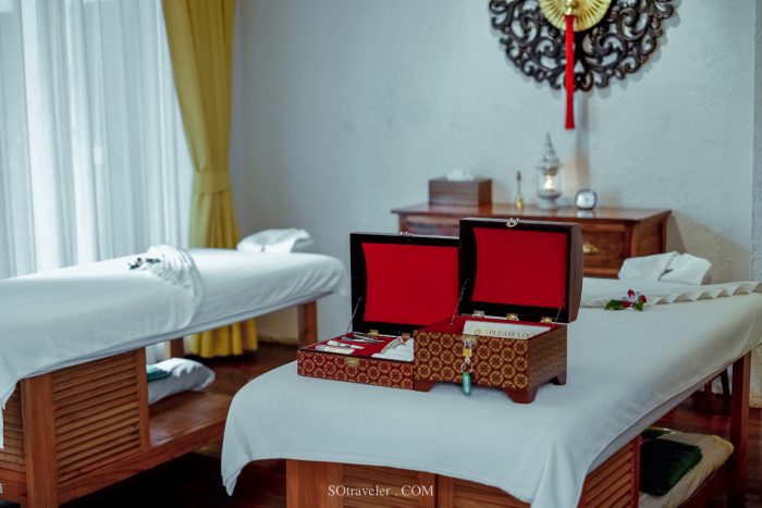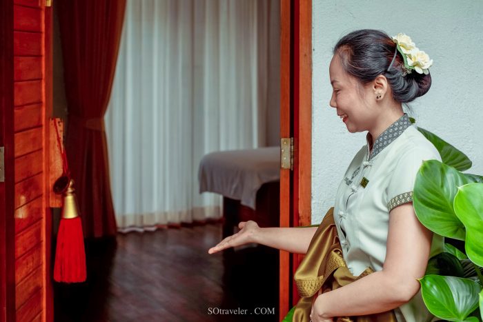 หลังจากที่เรากรอก Confidental Health Assessment แล้ว Therapist ก็ได้พาเราเข้าสู่ห้อง spa treatment ซึ่งมีทั้งห้องเดี่ยวและห้องแบบ 2 ท่านสำหรับท่านที่มาเป็นคู่ โดยใช้การตกแต่งในลักษณะโมเดรินไทยล้านนา ภายในห้องสปาจะประกอบไปด้วยส่วน indoor ที่มีเตียงสปา และหีบไม้ประดับซึ่งใช้สำหรับใส่ของใช้ส่วนตัว มีเสียงดนตรีเบาๆ ที่เปิดเพื่อสร้างความผ่อนคลาย และส่วน outdoor ที่เป็นบริเวณห้องอาบน้ำ และห้อง stream ที่หอมด้วยกลิ่นสมุนไพร (ห้อง stream มีเฉพาะในบาง treatment menu)