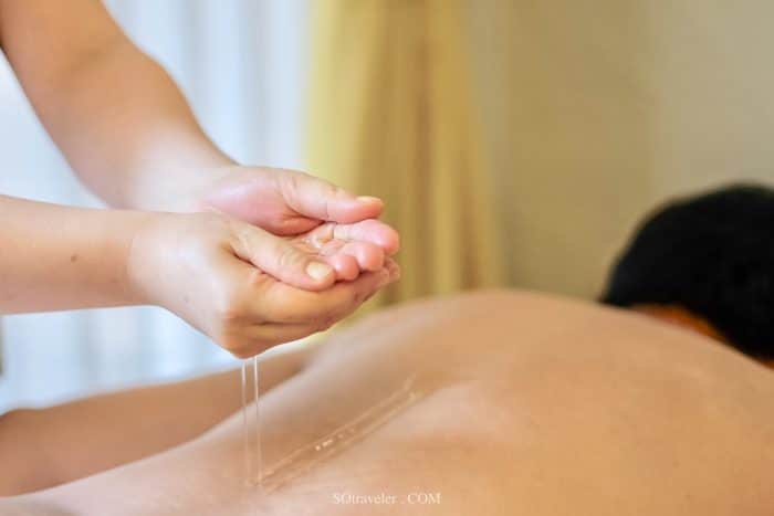 หลังจากนั้นจะตามด้วยการนวด Hot oil ที่มีกลิ่นหอมของดอกไม้อ่อนๆ ผสมผสานกับสมุนไพร นวดไล้ไปตามกล้ามเนื้อที่เคยหดเกร็งให้มีการคลายตัวจากทั้งความร้อนของน้ำมันเอง และจากคลึงนวดตามกล้ามเนื้อ